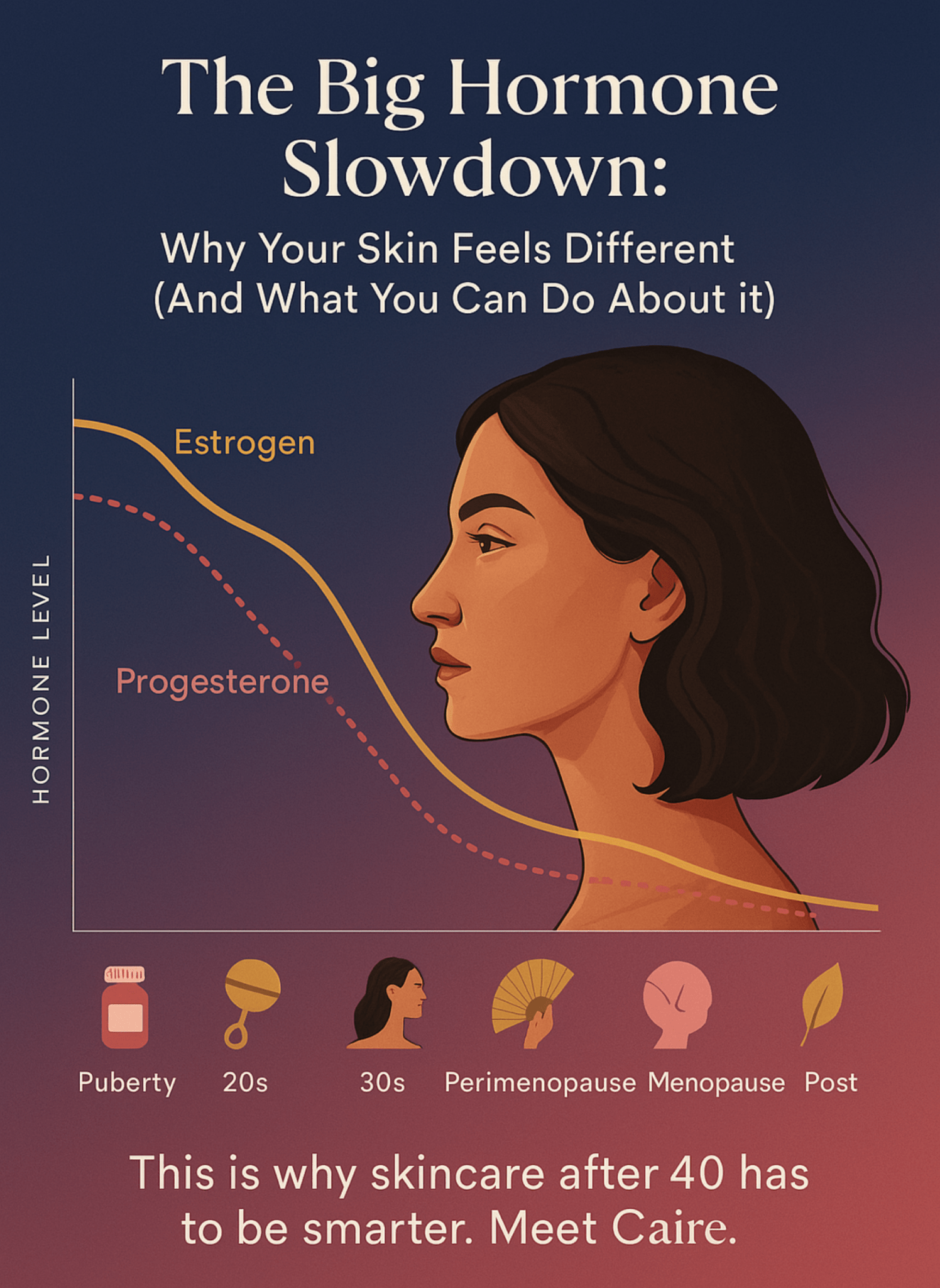 Eye-vantage: Pat gently around eyes but don’t miss the undereye, eyelid, and all around. Feeding this ocular area is a win. Because with consistent use, you can help lift up sags and bags around the eye area - one of the top skin concerns from hormone-caused aging.